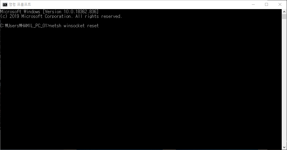 7. 이건뭐지... netsh winsocket reset 쳐봄 -> 해결